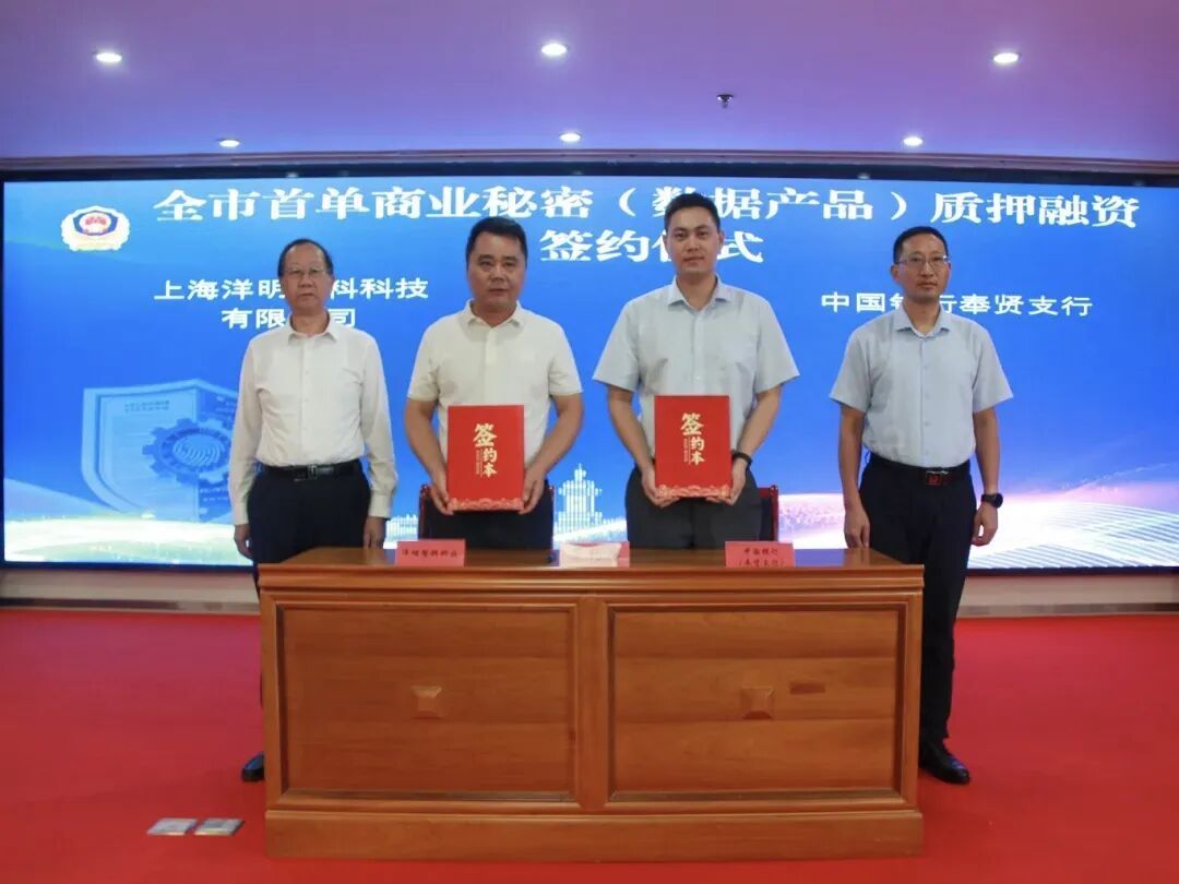 近期,奉贤区商业秘密创新试点企业上海洋明塑料科技有限公司与中国银行奉贤支行正式签订全市首单5000万元商业秘密(数据产品)质押融资贷款协议。拿到质押合同的那一刻,企业董事长贾丙昌激动地表示,“感觉自己好像捧着一张中了头奖的彩票,真没有想到,我们企业的商业秘密有一天也可以在银行质押变现,也可以成为融资领域内的‘硬通货’”。