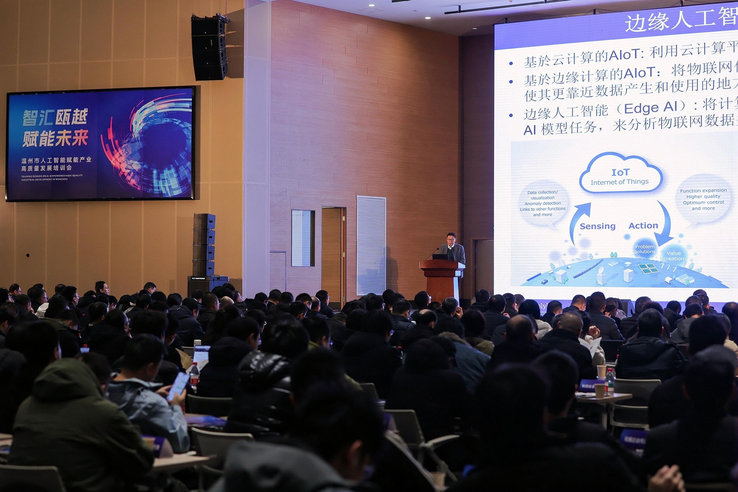1月10日,温州市人工智能赋能产业高质量发展分享会在浙南科技城举行。国内AI领域顶级学者,与全市相关部门、科研院所、重点企业相关负责人,围绕边缘智能、协作生成式AI等前沿课题交流分享,共同探寻传统产业智能化升级的现实路径。